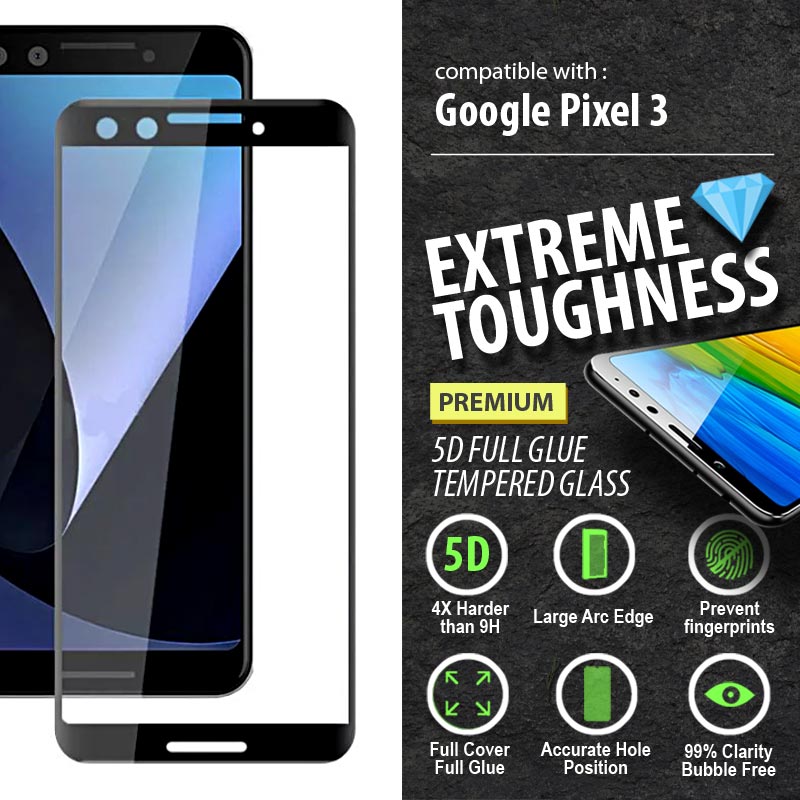 ^ Google Pixel 3 - PREMIUM 5D Full Glue Tempered Glass