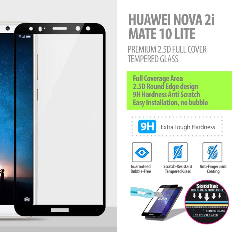 ^ Huawei Nova 2i - Mate 10 Lite - Premium 2.5D Full Cover Tempered Glass