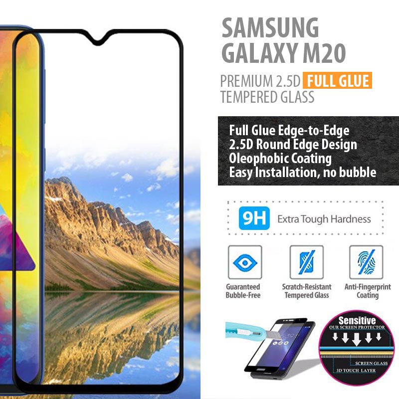 ^ Samsung Galaxy M20 - PREMIUM 2.5D Full Glue Tempered Glass