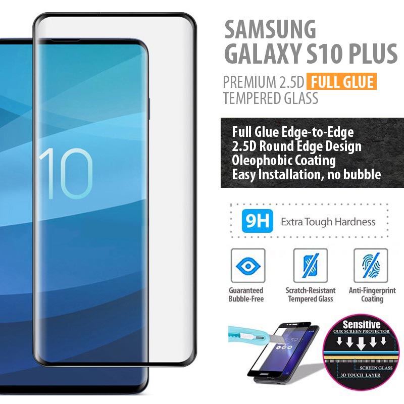 ^ Samsung Galaxy S10 Plus - PREMIUM 3D Curved Full Tempered Glass