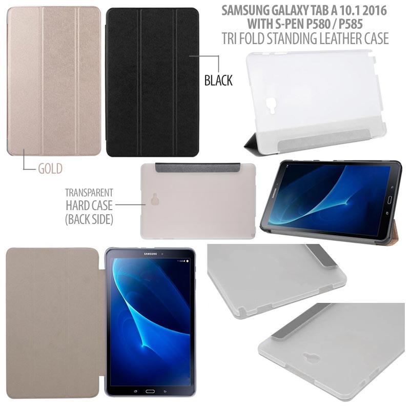 Samsung Galaxy Tab A 10.1 2016 With S Pen P580 P585Y - Tri Fold Standing Leather Case }