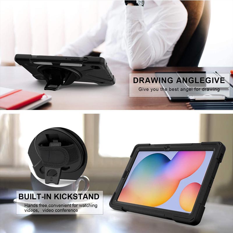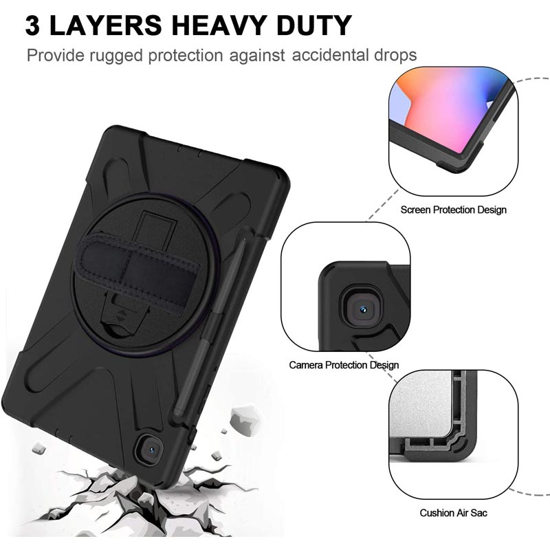 Samsung Galaxy Tab S6 Lite 10.4 Inch P615 - X-Shape Armor with Rotary Kickstand and Hand Strap