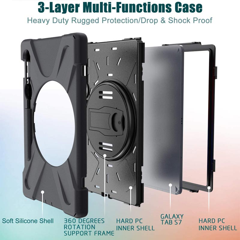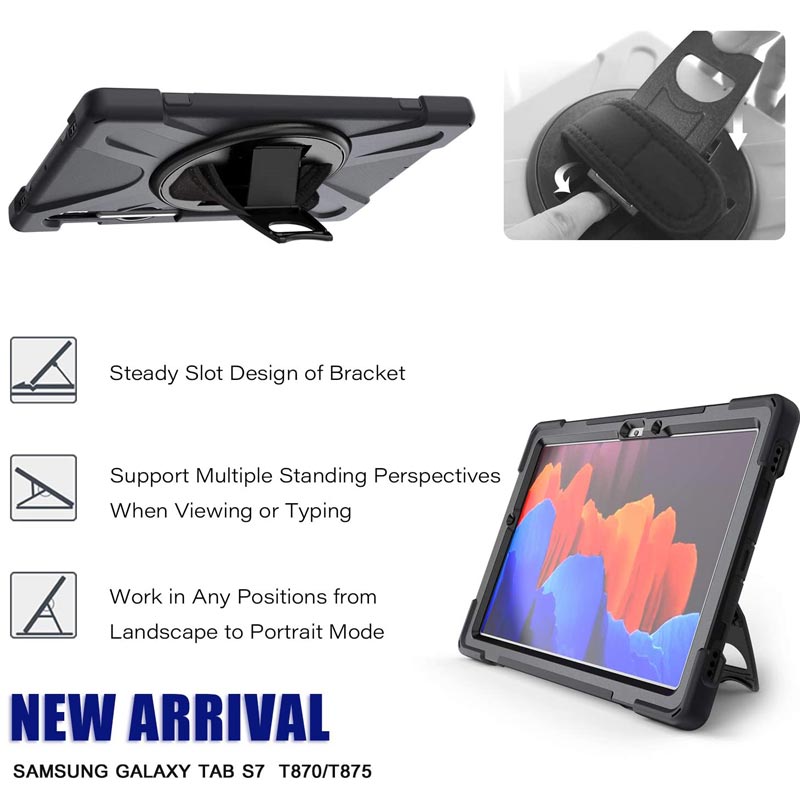 Samsung Galaxy Tab S7 2020 11 Inch T875 - X-Shape Armor with Rotary Kickstand and Hand Strap