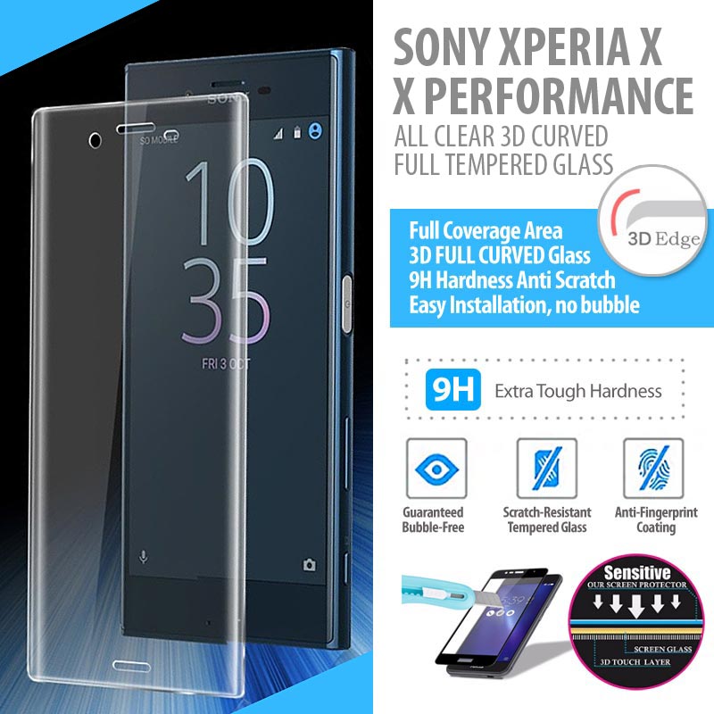 ^ Sony Xperia X / Xperia X Performance Dual / X Performance - ALL CLEAR 3D Curved Full Tempered Glass