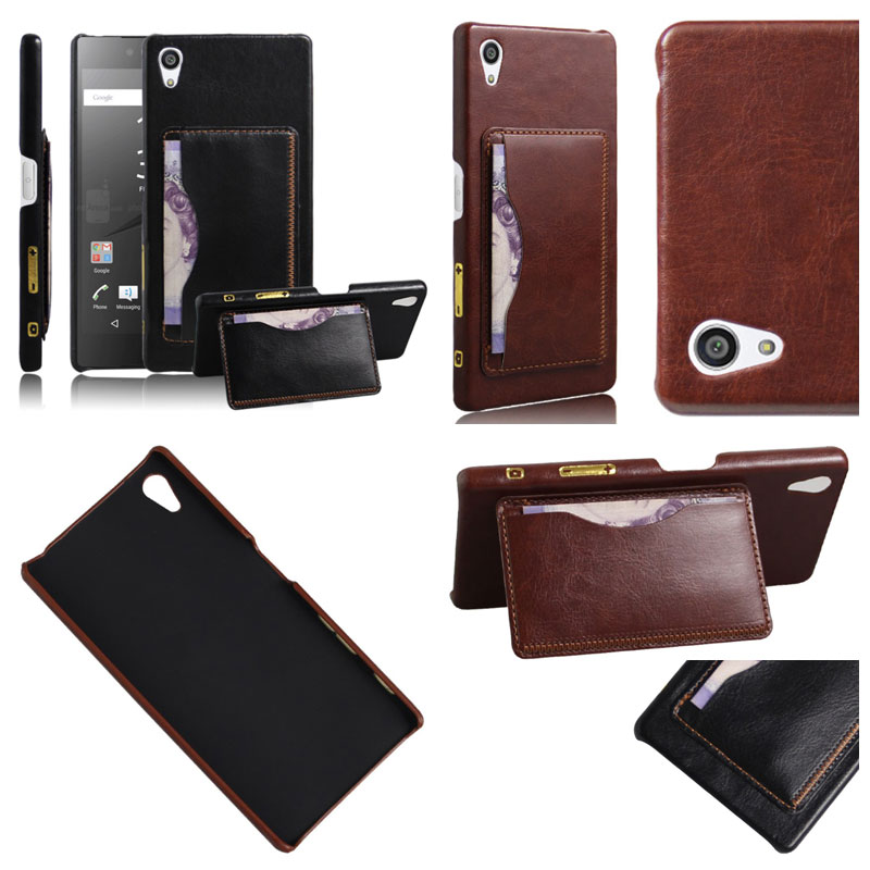* Sony Xperia Z5 Dual / Z5 - Leather Textured Standing Hard Case with Card Slot
