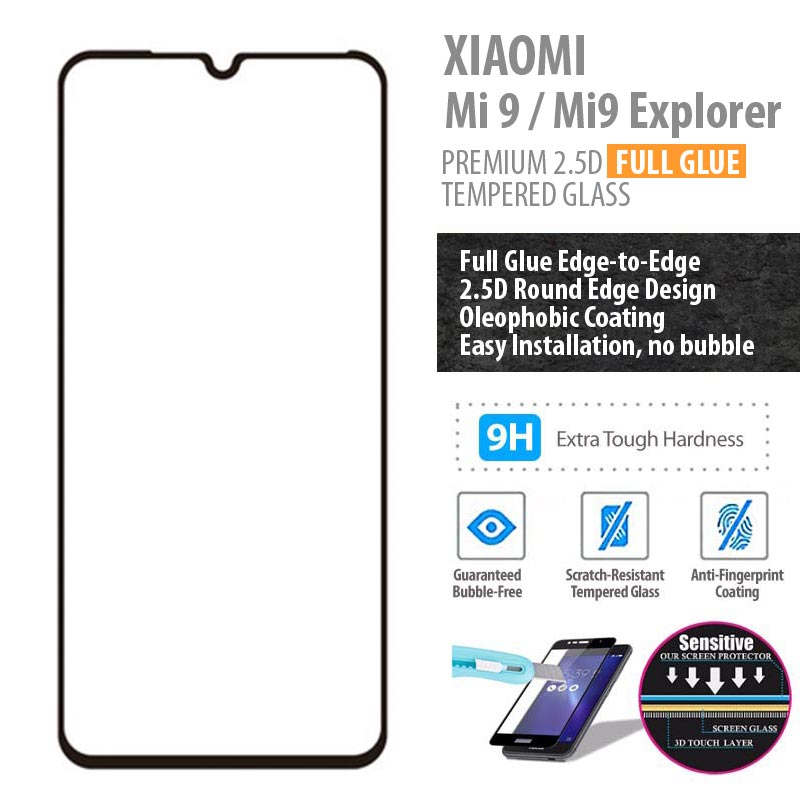 ^ Xiaomi Mi 9 / Mi9 / Mi 9 Explorer / Mi9 Explorer - PREMIUM 2.5D Full Glue Tempered Glass