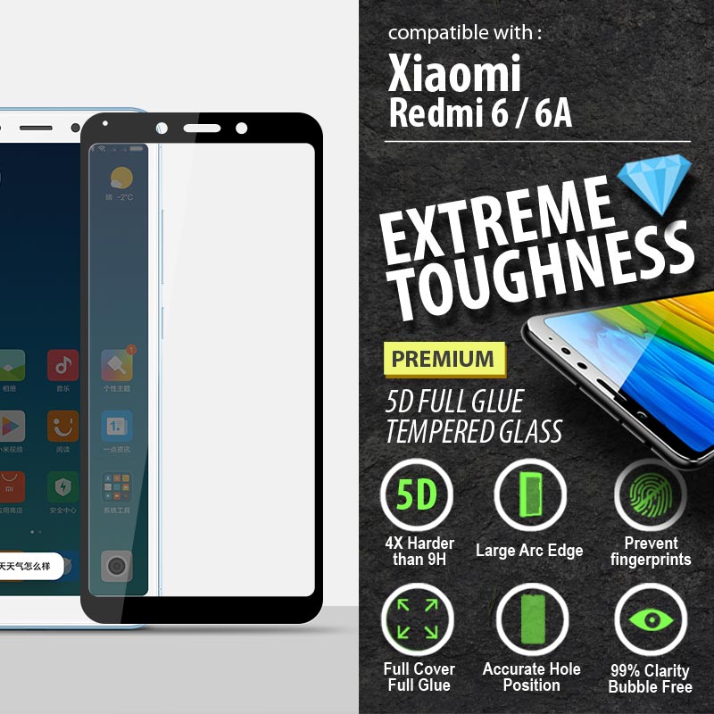 ^ Xiaomi Redmi 6 / Redmi 6A - PREMIUM 5D Full Glue Tempered Glass