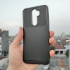 Terbuat dari material: TPU (Thermoplastic Poly Urethane) yang fleksibel. Dengan teskture brushed dan carbon fiber yang membuat penampilan smartphone anda menjadi lebih keren.