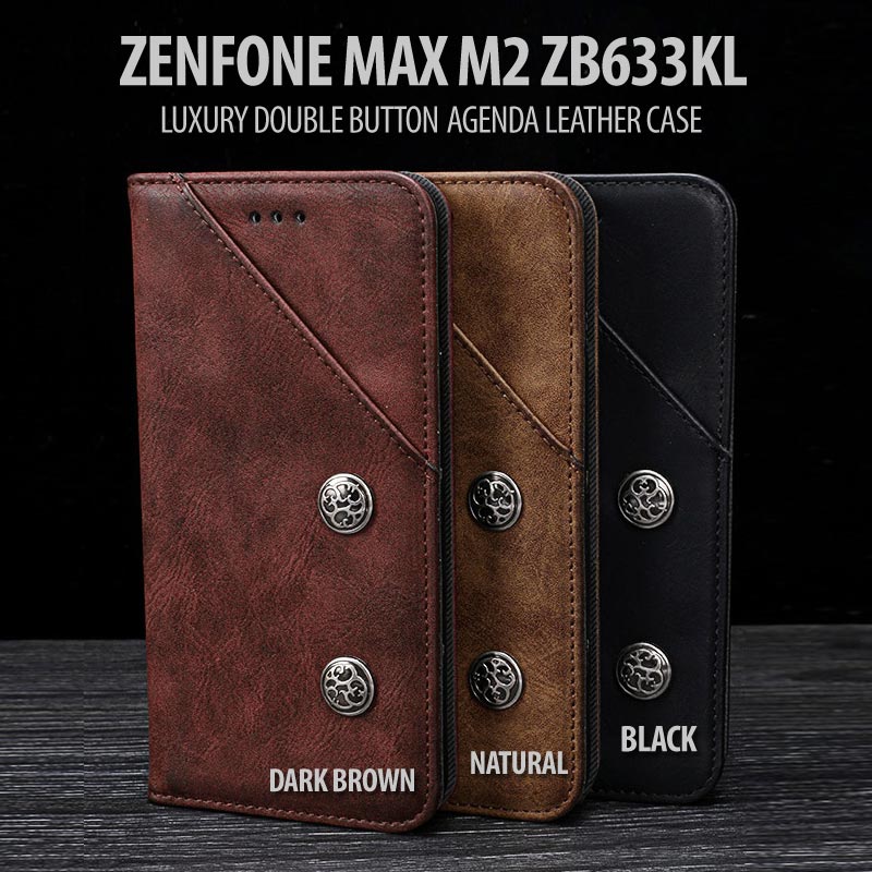 ^ Asus Zenfone Max M2 ZB633KL - Luxury Double Button Agenda Leather Case