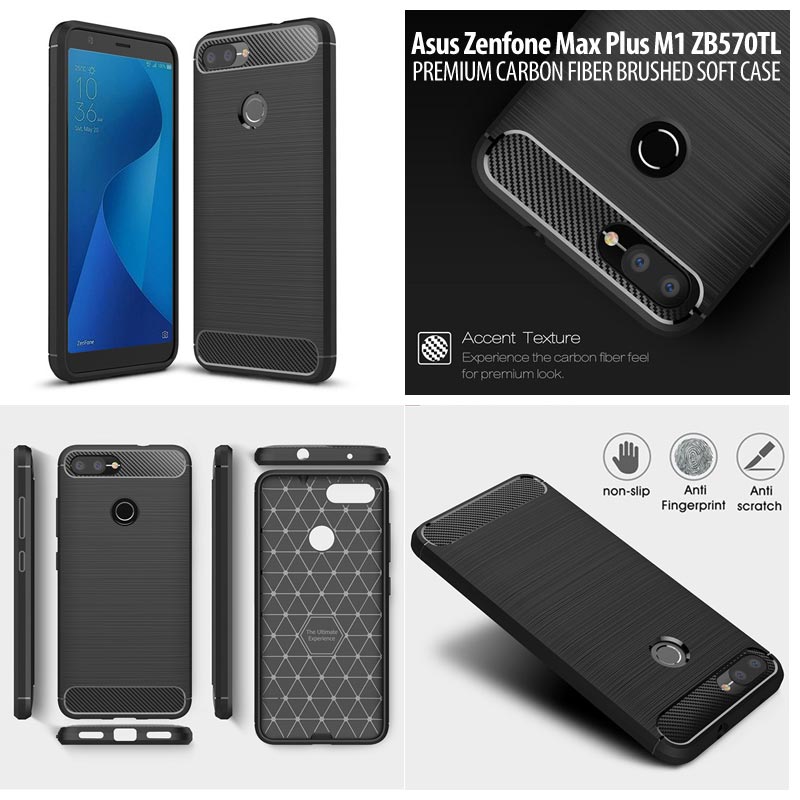 ^ Asus Zenfone Max Plus M1 ZB570TL - PREMIUM Carbon Fiber Brushed Soft Case }