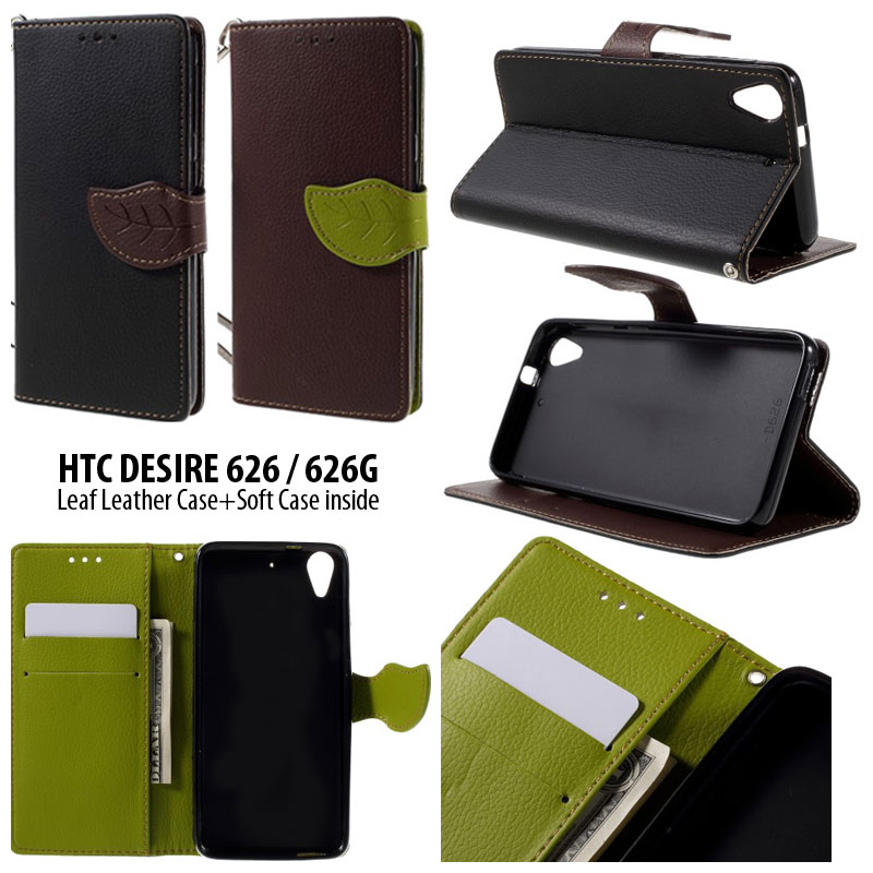 * HTC Desire 626 / Desire 626G- Leaf Leather Case with Soft Case inside