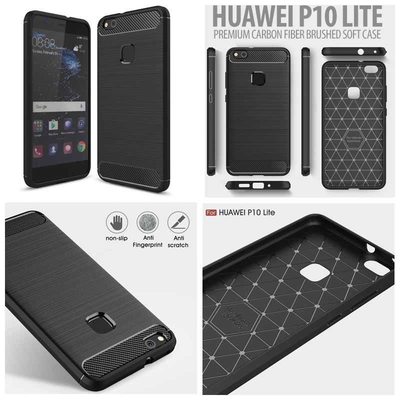 ^ Huawei P10 Lite - PREMIUM Carbon Fiber Brushed Soft Case }