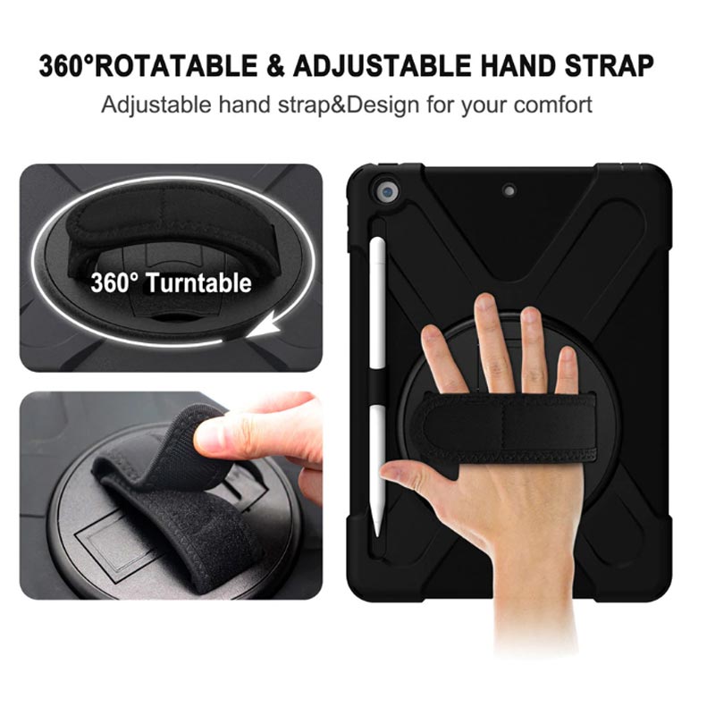 iPad 7 2019 10.2 Inch - iPad 8 2020 - X-Shape Armor With Rotary Kickstand and Handstrap