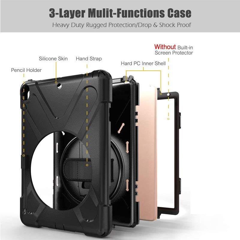 iPad Air 3 2019 10.5 Inch - iPad Pro 10.5 - X-Shape Armor with Rotary Kickstand and Handstrap