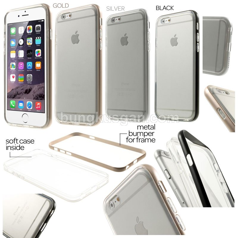 * iPhone 6 / iPhone 6S - Snap On Metal Bumper with Transparent Soft Case
