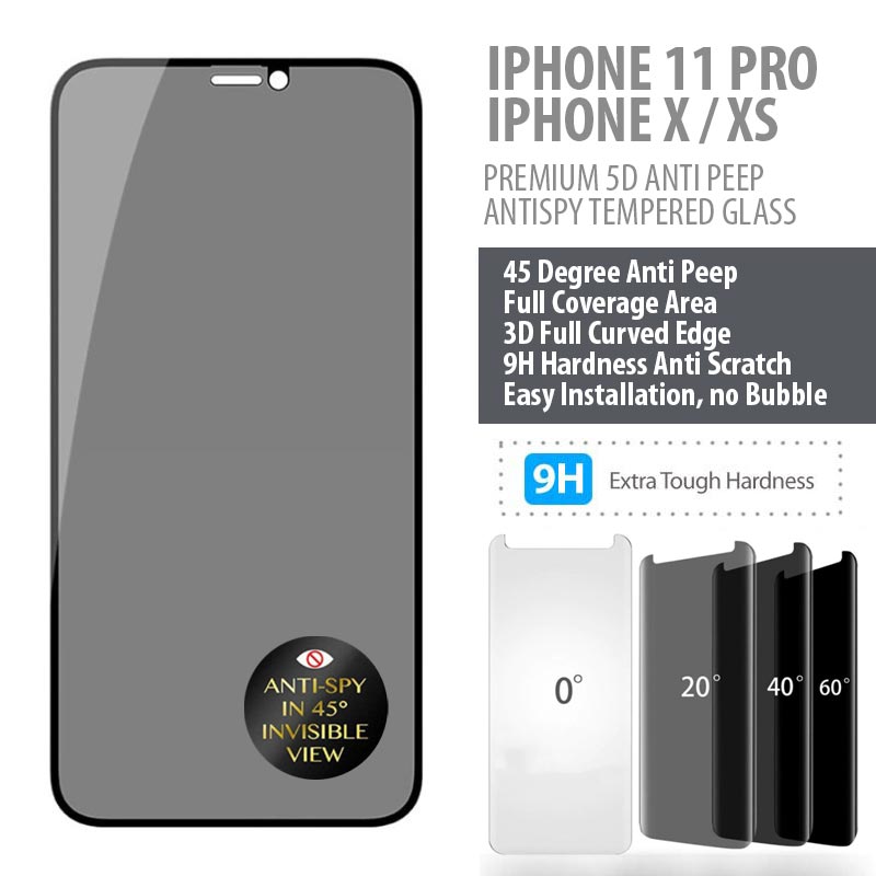iPhone X - XS - 11 Pro - PREMIUM 5D Privacy Anti Peep Antispy Tempered Glass