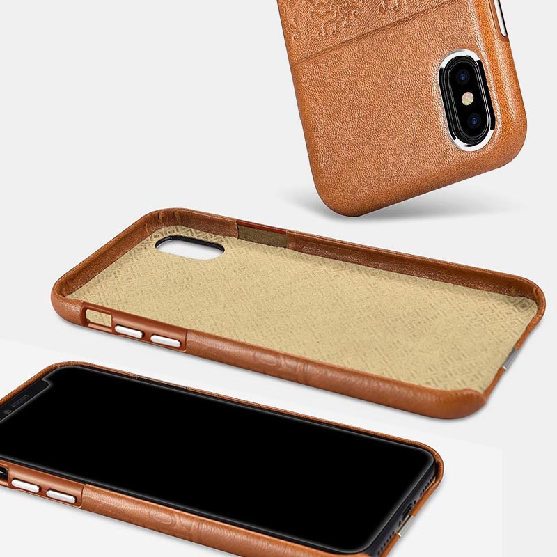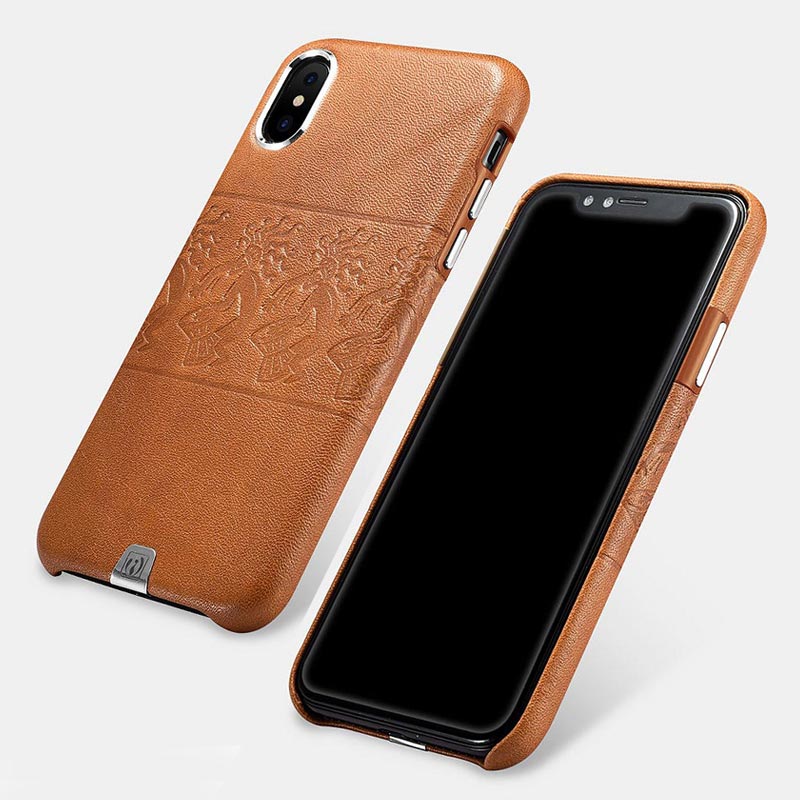 ^ iPhone X / XS - iCarer Genuine Leather Tribal Back Hard Case