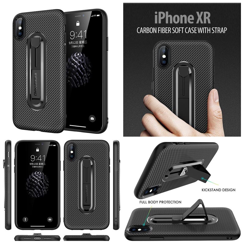 ^ iPhone XR - Carbon Fiber Soft Case with Strap