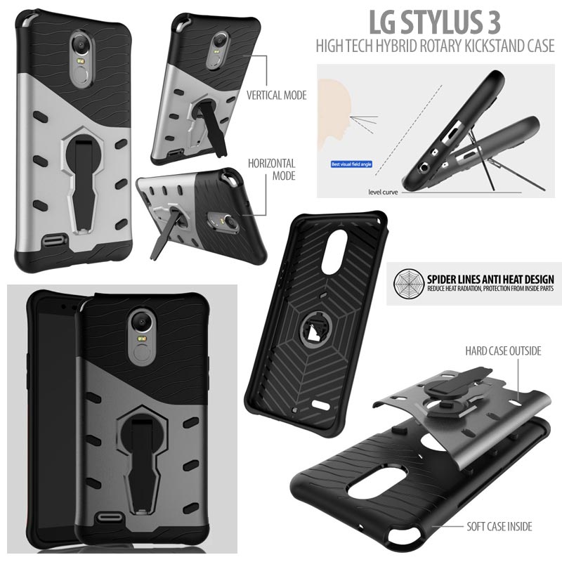 ^ LG Stylus 3 - High Tech Hybrid Rotary Kickstand Case }