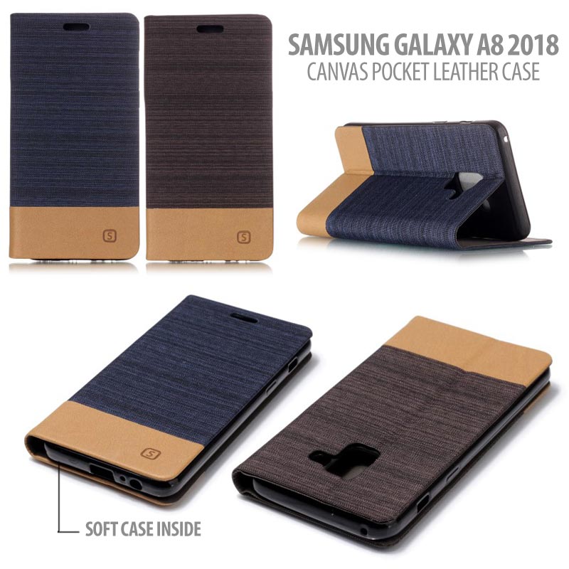 * Samsung Galaxy A8 2018 - Canvas Pocket Leather Case }