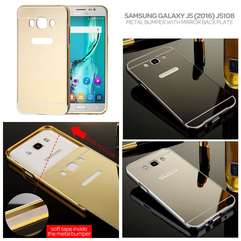 ^ Samsung Galaxy J5 2016 J5108 - Mirror Metal Bumper With Back Plate