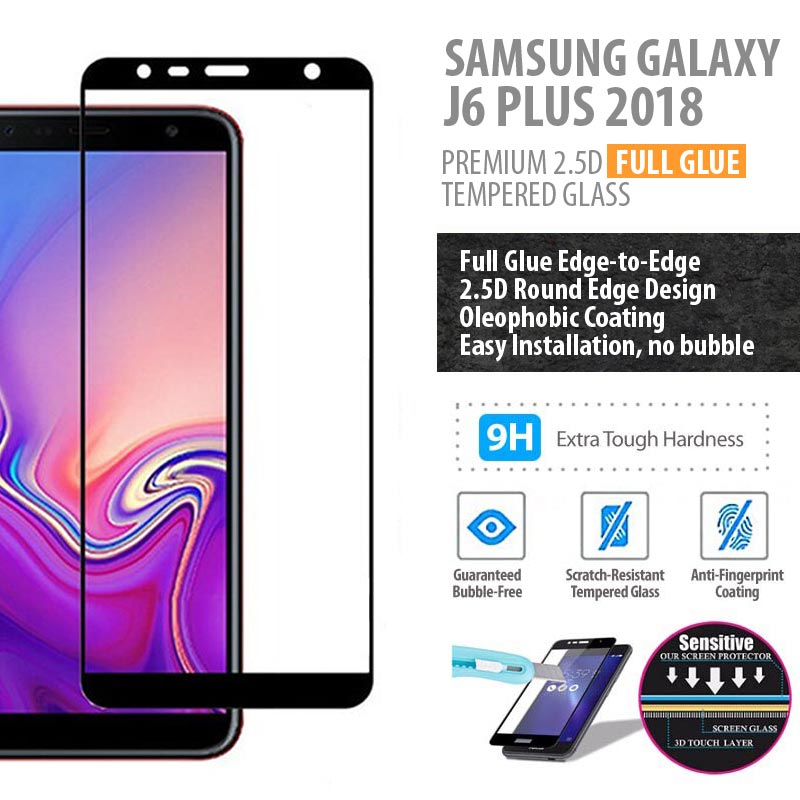 ^ Samsung Galaxy J6 Plus 2018 - PREMIUM 2.5D Full Glue Tempered Glass