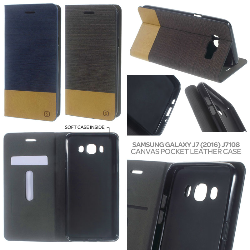 * Samsung Galaxy J7 2016 J7108 - Canvas Pocket Leather Case