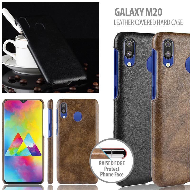 ^ Samsung Galaxy M20 - Leather Covered Hard Case