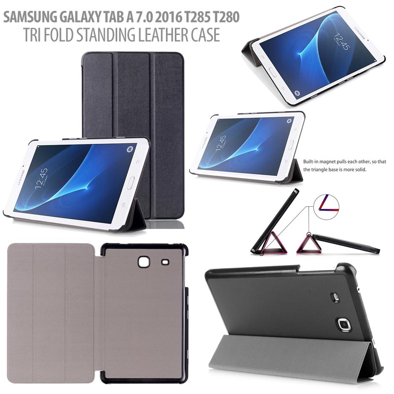 ^ Samsung Galaxy Tab A 7.0 2016 T280 T285 - Tri Fold Standing Leather Case }