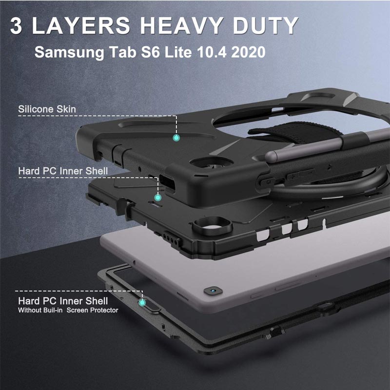 Samsung Galaxy Tab S6 Lite 10.4 Inch P615 - X-Shape Armor with Rotary Kickstand and Hand Strap