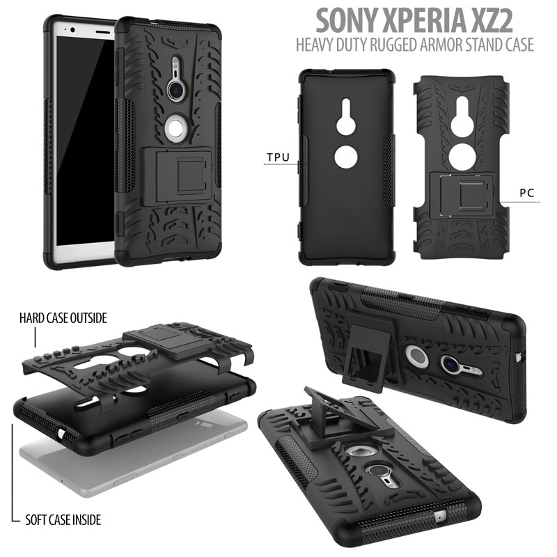 ^ Sony Xperia XZ2 - Heavy Duty Rugged Armor Stand Case }