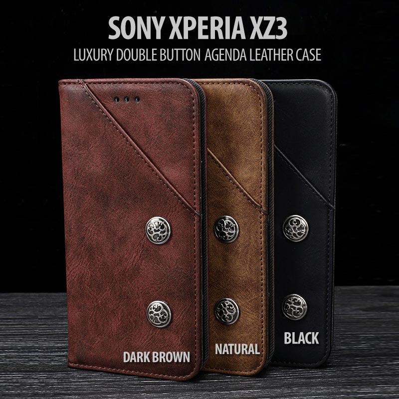 ^ Sony Xperia XZ3 - Luxury Double Button Agenda Leather Case