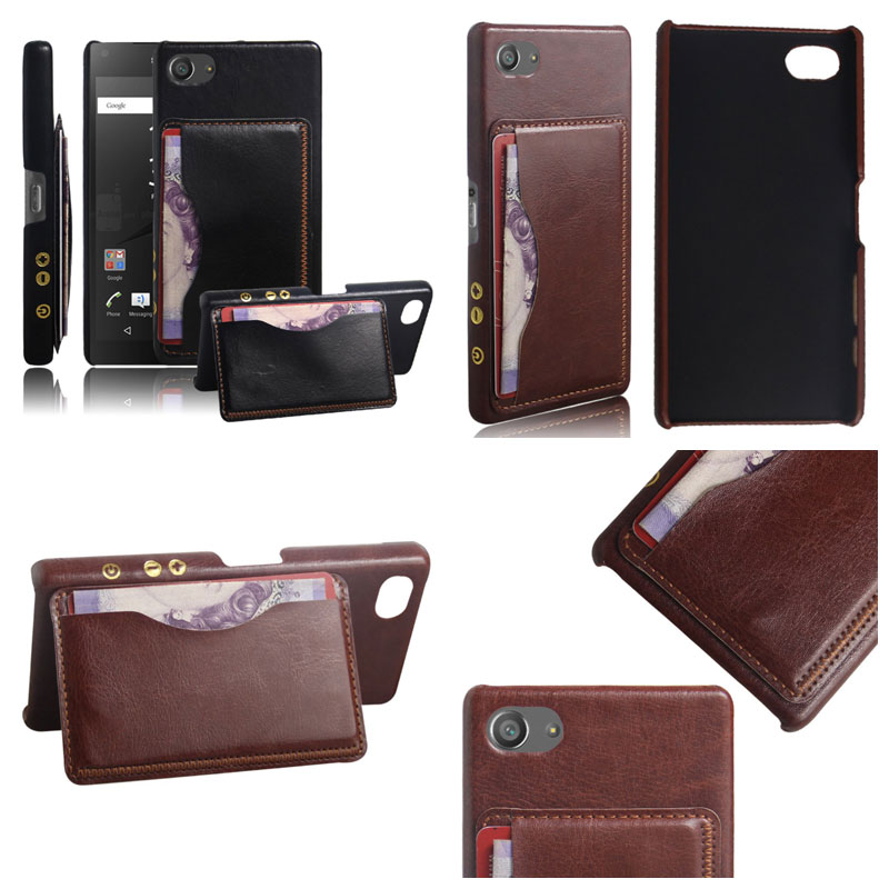* Sony Xperia Z5 Compact E5803 - Leather Textured Standing Hard Case with Card Slot