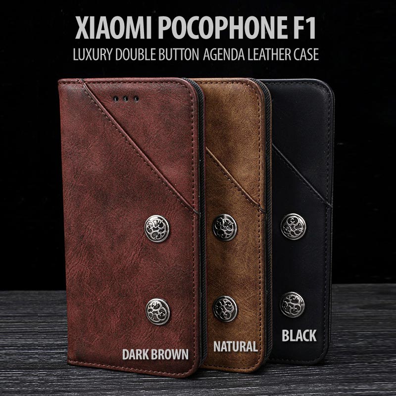 ^ Xiaomi Pocophone F1 - Luxury Double Button Agenda Leather Case